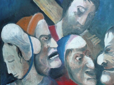 Halten wir uns also an Matthäus. Bei ihm heißt es: Sie hatten aber zu der Zeit einen besonderen Gefangenen, der hieß (legomenon, von legomenos) Jesus Barabbas. Und als sie versammelt waren, sprach Pilatus zu ihnen: Welchen wollt ihr? Wen soll ich euch losgeben, Jesus Barabbas oder Jesus, der Christus genannt wird? Denn er wußte, daß sie ihn aus Neid überantwortet hatten. Was soll ich denn machen mit Jesus, der Christus genannt wird? Sie sprachen alle: Laß ihn kreuzigen! Das Volk entscheidet sich vor Pilatus nicht gegen Jesus, weil es sich gar nicht gegen Jesus entscheiden kann. Es kann nur darüber entscheiden, in welcher Gestalt Jesus gegenwärtig ist. Der »sogenannte« Barabbas und der »sogenannte« König der Juden verkörpern zwei unterschiedliche Möglichkeiten, was im Laufe der Geschichte aus Jesus werden kann.
